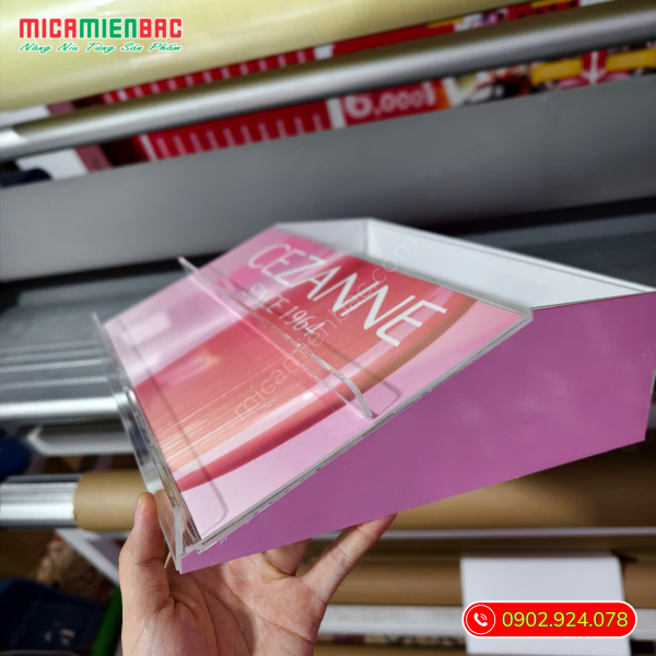 Kệ mỹ phẩm để bàn được làm từ chất liệu mica trong suốt cao cấp – một loại vật liệu đang rất được ưa chuộng hiện nay trong ngành thiết kế trưng bày. Sản phẩm tại Mica Miền Bắc được gia công tỉ mỉ, bo góc tinh tế và có độ bền cao, giúp bảo vệ và làm nổi bật các dòng mỹ phẩm cao cấp.